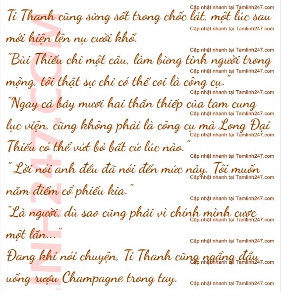 Nghe vậy, Ti Thanh cũng nở nụ cười: “Bùi Thiếu, nếu nói lời này, không sợ Long Đại Thiếu nghe được sẽ hiểu lầm sao?”