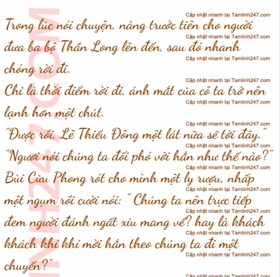“Tôi đã đặt trước căn phòng cao cấp nhất tại đây, thêm một bộ Thần Long, sau đó kêu Lê Thiếu Đông qua nâng cốc chúc mừng cho chúng ta. Không phải là vấn đề lớn sao?”