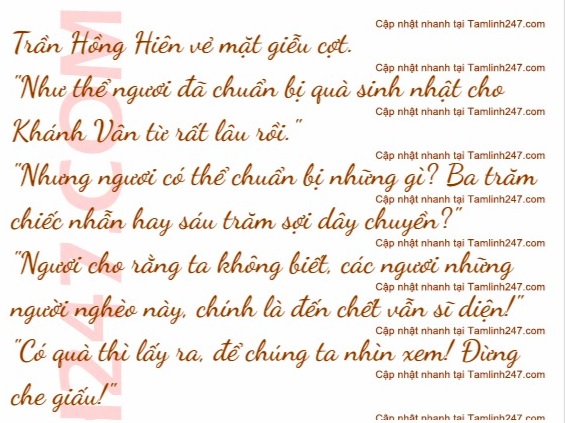 Trần Hồng Hiên khịt mũi coi thường Bùi Nguyên Minh: “Họ Bùi, ngươi có bản lĩnh thì giống như ta, gửi một món quà trị giá mấy chục triệu cho Khánh Vân!”