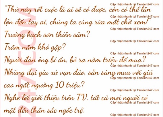 Sau đó, người dẫn chương trình của TV tiếp tục giới thiệu: “Trường Bạch sơn thiên sâm này, là một loại thuốc bổ quý hiếm dành cho người Tu luyện võ đạo, có khả năng để võ đạo tiến thêm một bước.”