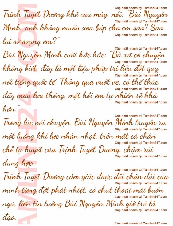 Trịnh Tuyết Dương lúc này mới bước đến bên giường ngồi xuống, sau đó duỗi thẳng một chân dài đến trước mặt Bùi Nguyên Minh.