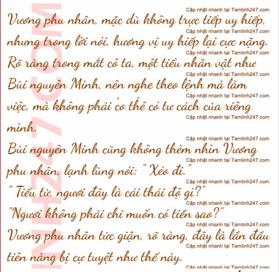 Nghe được lời nói của Bùi nguyên Minh, vẻ mặt Vương phu nhân trở nên cứng đờ, sau đó gương mặt xinh đẹp phát lạnh nói: “Tiểu tử, ngươi nghe không hiểu ta nói sao?”
