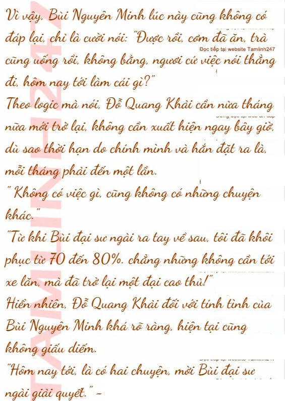 Bùi Nguyên Minh ra hiệu Trương Long Hổ dâng trà cho Đỗ Quang Khải, sau đó mỉm cười mở miệng.