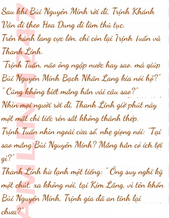 Vì sợ làm gián đoạn Trịnh Tuyết Dương nghỉ ngơi, Bùi Nguyên Minh không ở lại chăm sóc cô, mà cùng Trịnh Khánh Vân tán gẫu vài câu, liền rời khỏi bệnh viện.