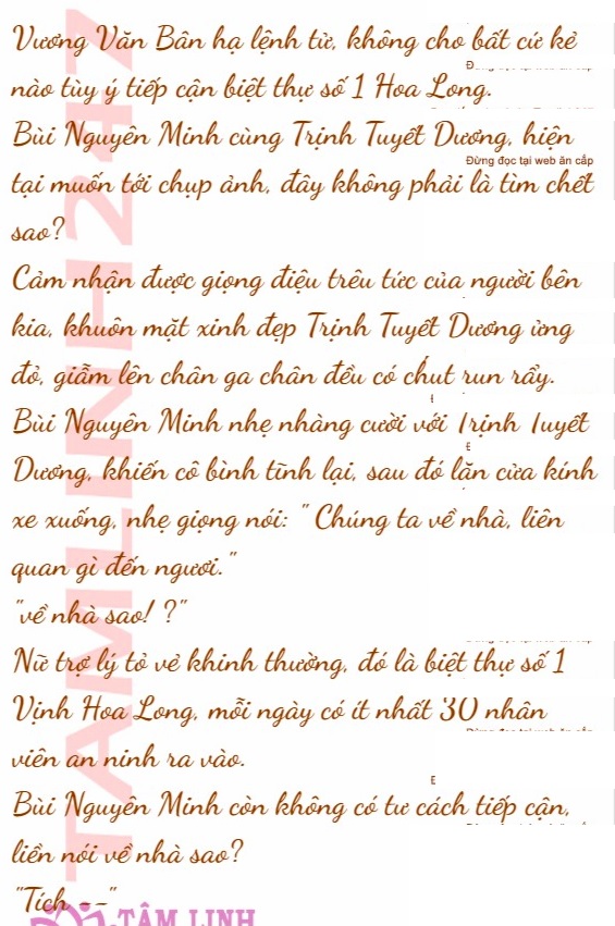 Bùi Nguyên Minh cười nhạt, vỗ về Trịnh Tuyết Dương đang có chút hoang mang, ra hiệu cho cô quay tay lái, đi về phía lâu vương, khu biệt thự số 1 Vịnh Hoa Long.