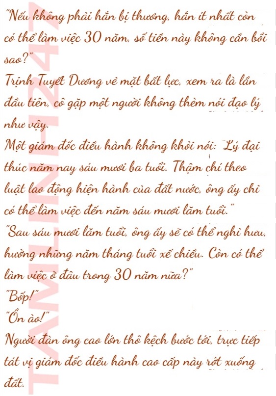 ” Mặt khác, căn cứ chương trình công ty, công ty chúng ta sẽ cho ông ta một khoản trợ cấp tàn tật là 10 triệu. Cá nhân ta thêm 10 triệu nữa, để tạo ra 20 triệu trợ cấp.”