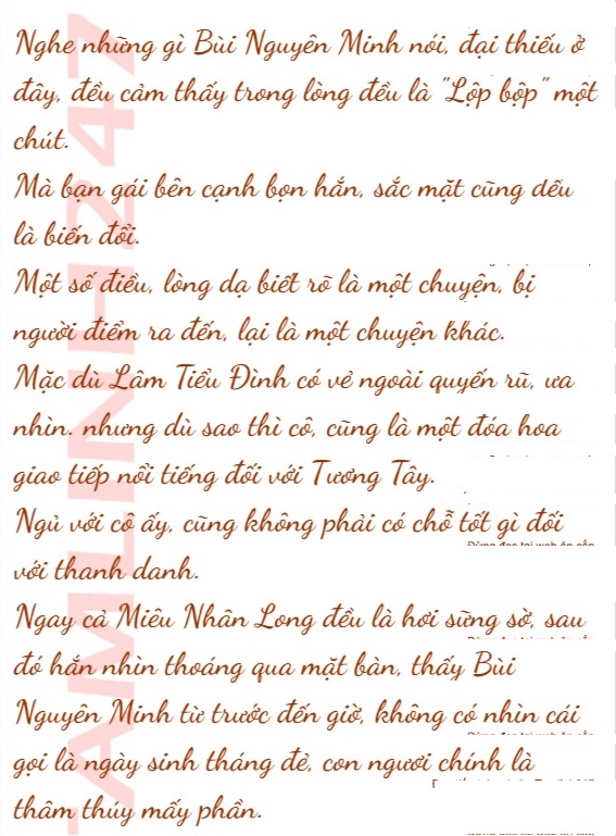 Bùi Nguyên Minh không có đi nhìn ngày sinh tháng đẻ trên mặt bàn, mà là híp mắt nhìn xem Lâm Tiểu Đình, một lát sau khẽ mỉm cười nói: “Lâm tiểu thư, ngươi ấn đường đỏ lên, khuôn mặt xinh như hoa đào, nếu ta đọc chính xác, ngươi tối hôm qua, liền có một trận mây mưa nát hoa đào, phải không? ”