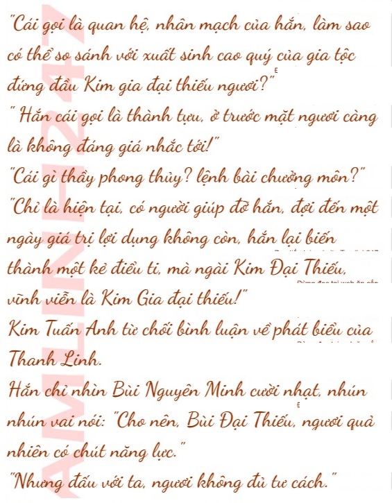 Bùi Nguyên Minh không thèm để ý đến cô ta, ngược lại ngồi xuống, liếc mắt nhìn Kim Tuấn Anh, thản nhiên nói: “Xác thực phải nói chuyện.”