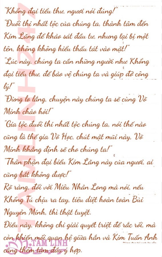 Lúc này, Bùi Nguyên Minh chắp hai tay sau lưng, đi đến trước mặt Khổng Tú, khiêu khích cằm nhọn của cô, nói: “Võ Minh tồn tại, là vì công lý, mà không phải để người dùng quyền lực ức hiếp người khác.”