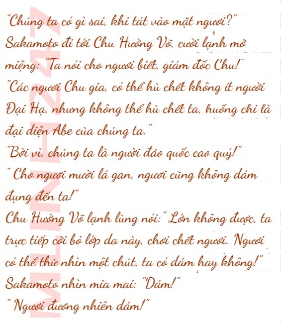 Sakamoto “Xùy” một tiếng bật cười, sau đó thuận tay, quất vào mặt Chu Hướng Võ một cái.