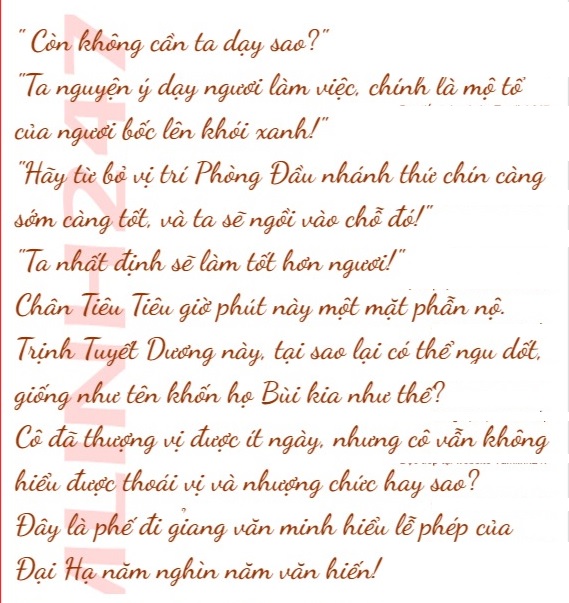 Trịnh Tuyết Dương chậm rãi đặt tập tài liệu xuống, liếc mắt nhìn Chân Tiêu Tiêu nói: “Chân Tiêu Tiêu, ngươi không được quên!”