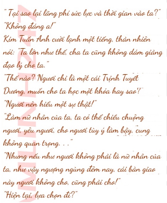 Kim Tuấn Anh ngạc nhiên trước sự thẳng thắn của Trịnh Tuyết Dương, sau đó lộ ra vẻ đùa cợt: “Ý của ngươi là nói, tất cả chuyện hôm nay, là ta cố ý bày trò để lừa ngươi sao?”