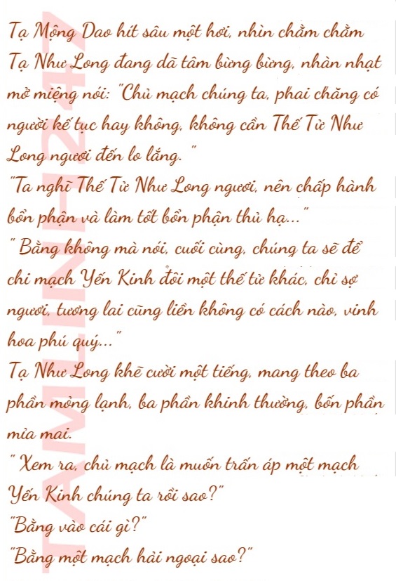 Nghe được những lời đầy ẩn ý của Tạ Như Long, Tạ Mộng Dao khẽ cau mày, sau đó chậm rãi nói: ” Thế Tử Như Long, thật khách khí.”