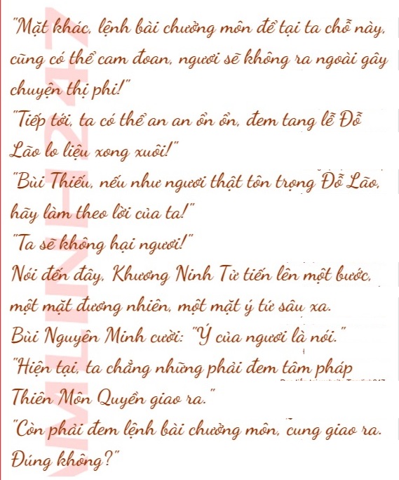 “Trừ tâm pháp Thiên Môn Quyền ra, ngươi còn phải đem lệnh bài chưởng môn, tạm thời giao cho ta bảo quản!”