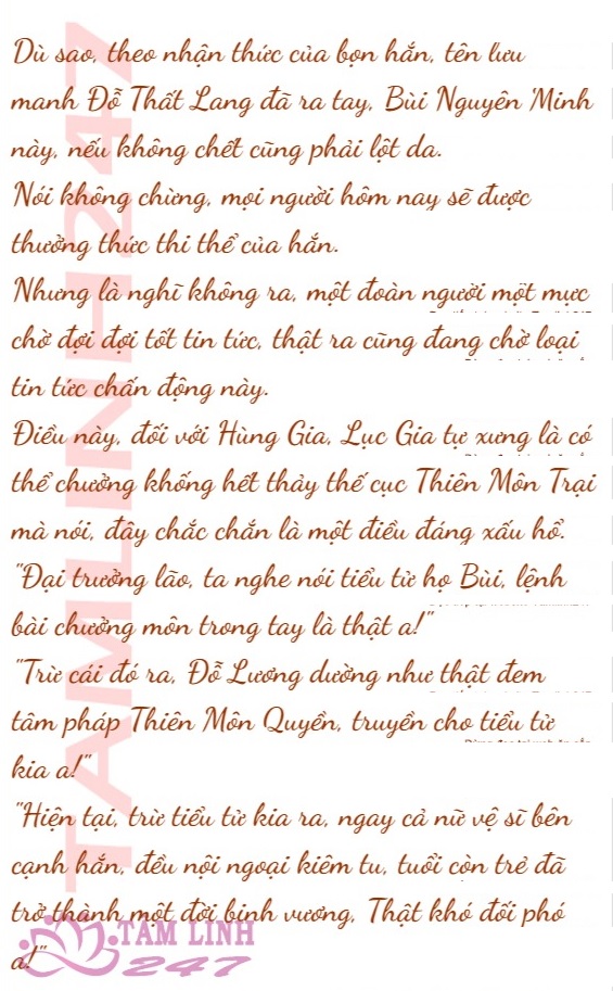 “Như vậy, ngươi mới có thể toàn thân trở ra, bằng không mà nói, tổng đà Thiên Môn Trại này, là đầm rồng hang hổ, vào thì dễ nhưng ra thì khó!”