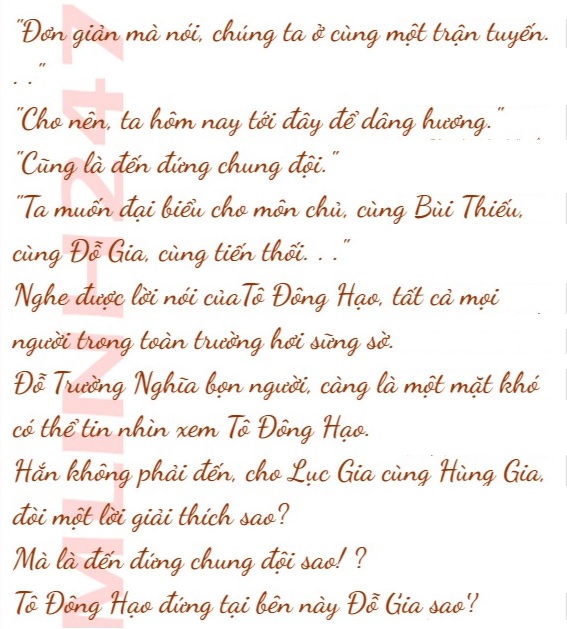 Người dám nói như vậy trước mặt Tô Đông Hạo, hiện tại, có lẽ trong Thiên Môn Trại chỉ có duy nhất anh ta.