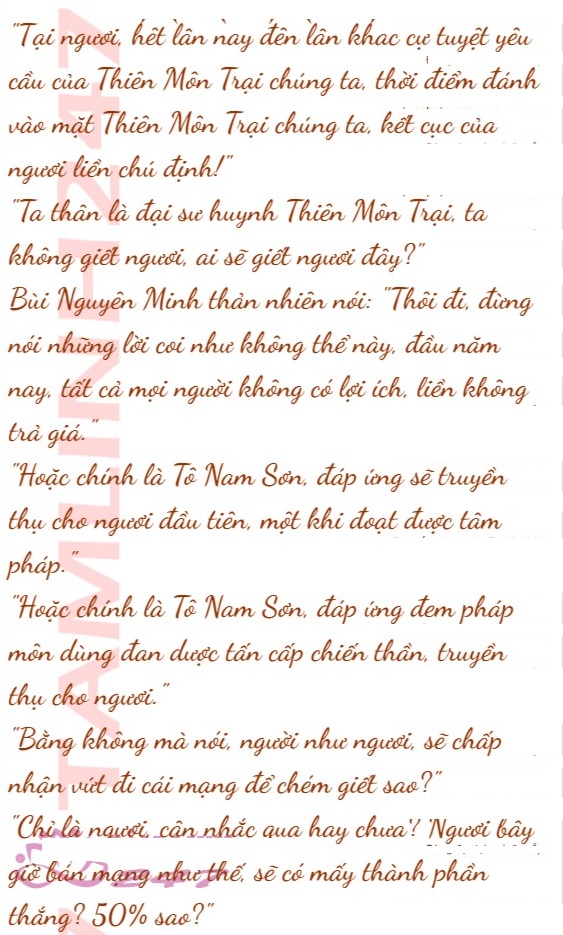 Nghe được lời nói của Bùi Nguyên Minh, Tô Đông Hạo lạnh lùng nói: “Ngươi không hiểu, Thiên Môn Trại chúng ta, không thể bị sỉ nhục!”