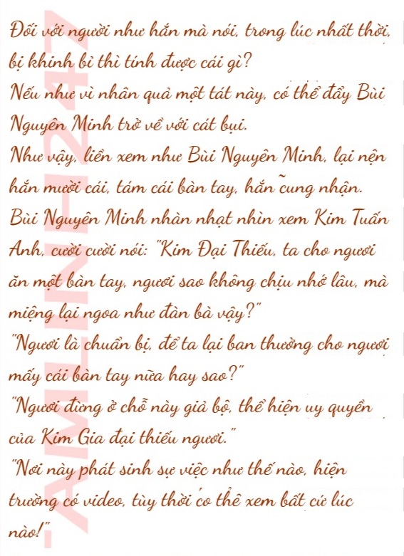 Sau đó, không cho Kim Tuấn Anh cơ hội phản ứng, Bùi Nguyên Minh trở tay, chính là một bàn tay quất thẳng vào mặt Kim Tuấn Anh.