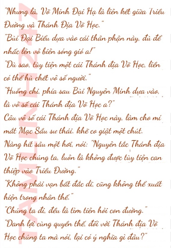 “Cho nên, tôi hi vọng tiểu di, vận dụng thân phận Y Tiên, một trong tứ Đại trưởng lão của Thánh địa Võ Học, đi cùng Bùi Đại Biểu nói vài lời hữu ích.”