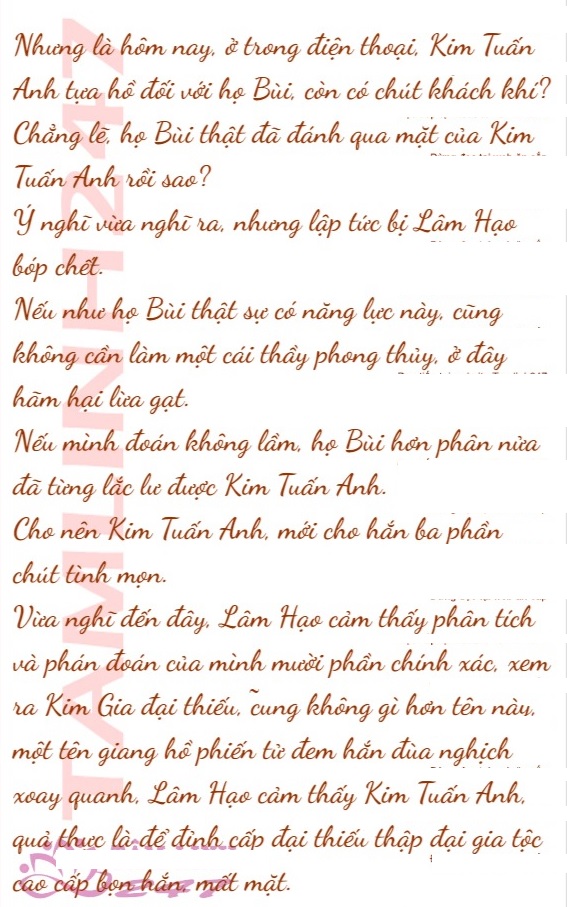 Rất nhanh, cuộc gọi được kết nối, giọng nói lãnh đạm của Kim Tuấn Anh vang lên trong điện thoại: “Lâm Thiếu, có chuyện gì vậy?”