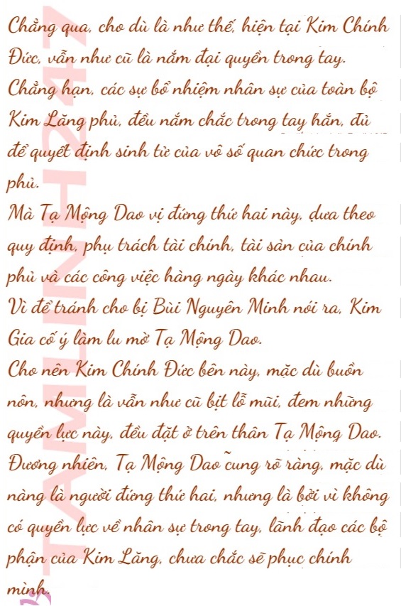 Ngoài việc liên hệ với những người đứng đầu trong sáu gia tộc ẩn thế, phân bổ các chức vụ trong phủ Kim Lăng, nàng còn dành một vị trí rất đặc thù cho Bùi Nguyên Minh, trong số những vị trí này.