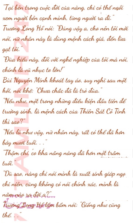 Trương Long Hổ nhếch miệng, nói: “Dựa theo bát tự mà xem, thì nữ nhân này, mệnh cách quá mức dọa người.”