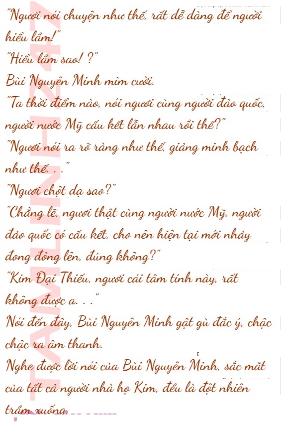 Mà Kim Tuấn Anh mí mắt cũng đang giật giật, lời nói của Bùi Nguyên Minh, giống như chỉ vào mũi mắng hắn cấu kết với người đảo quốc, người nước Mỹ!