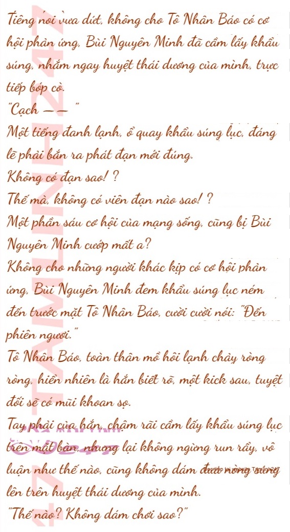 Giờ phút này, Bùi Nguyên Minh không để ý đến Báo Đen cùng Tô Nhân Báo, mà là nhẹ như mây gió, cầm lấy súng lục trên bàn trà, lại lấy thêm ba viên đạn nhét vào.