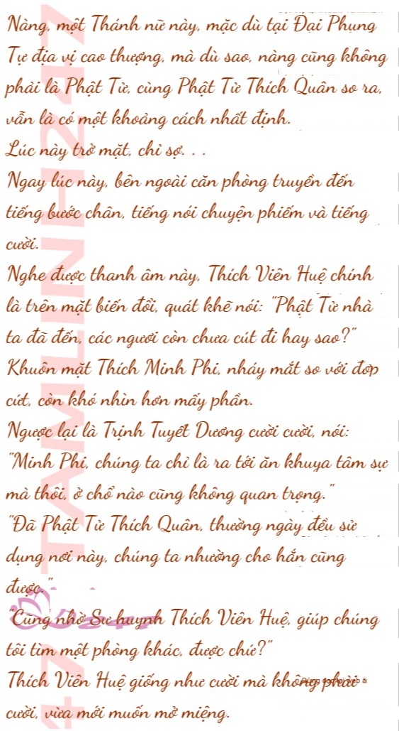 Giờ phút này, Thích Viên Huệ chắp hai tay sau lưng đi đến, không đợi Thích Minh Phi bọn người mở miệng, Tô Ương Kim đã là người đầu tiên đi lên phía trước, nói: “Thích Viên Huệ sư huynh, huynh có chuyện gì hay sao?”
