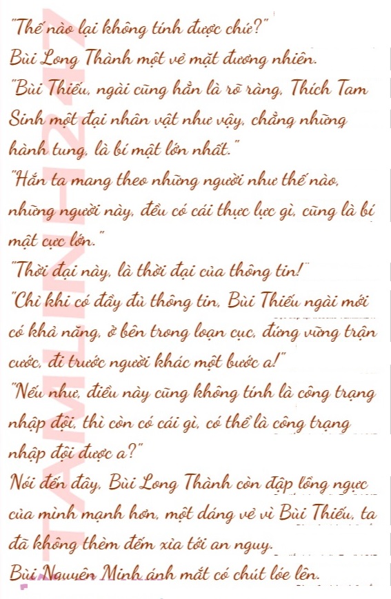 Hai người đang khi nói chuyện, Bùi Long Thành đã ở phía trước dẫn đường, mang theo Bùi Nguyên Minh, đi vào một căn phòng trong tứ hợp viện.