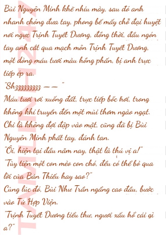 Đang khi nói chuyện, tay phải Bùi Nguyên Minh, đặt lên trên mạch môn của Trịnh Tuyết Dương, sau đó sắc mặt anh liền hơi đổi.