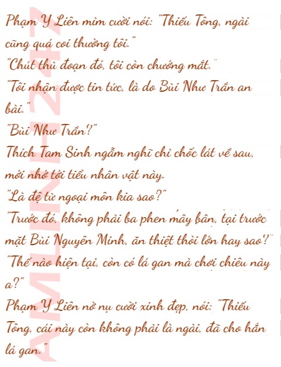Phạm Y Liên một mặt nhu hòa đi theo sau lưng Thích Tam Sinh, không nói một lời, giống như những vì sao bị tắt ánh sáng, trước vầng trăng.