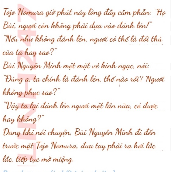 Sau đó, Bùi Nguyên Minh lại một chân, đem Tojo Nomura giống như con chó chết, đá văng ra khỏi cổng, sau đó mới thần sắc đạm mạc, ngồi xuống trước mặt Lý Khắc Mẫn.