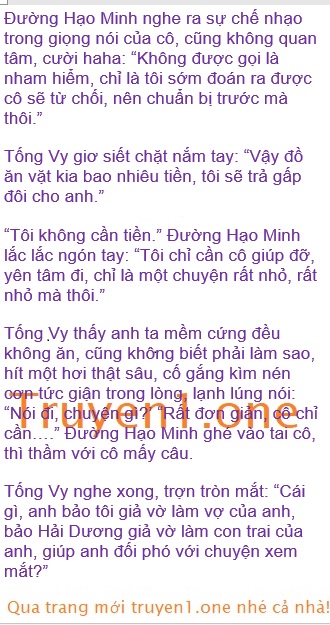 Tống Vy không chút do dự lắc đầu: “Rất xin lỗi, Sếp Đường, trừ khi anh dùng ân tình cứu Hải Dương cầu xin tôi, tôi sẽ đồng ý, còn về những thứ khác, tôi nghĩ tôi không có nghĩa vụ giúp anh.”
